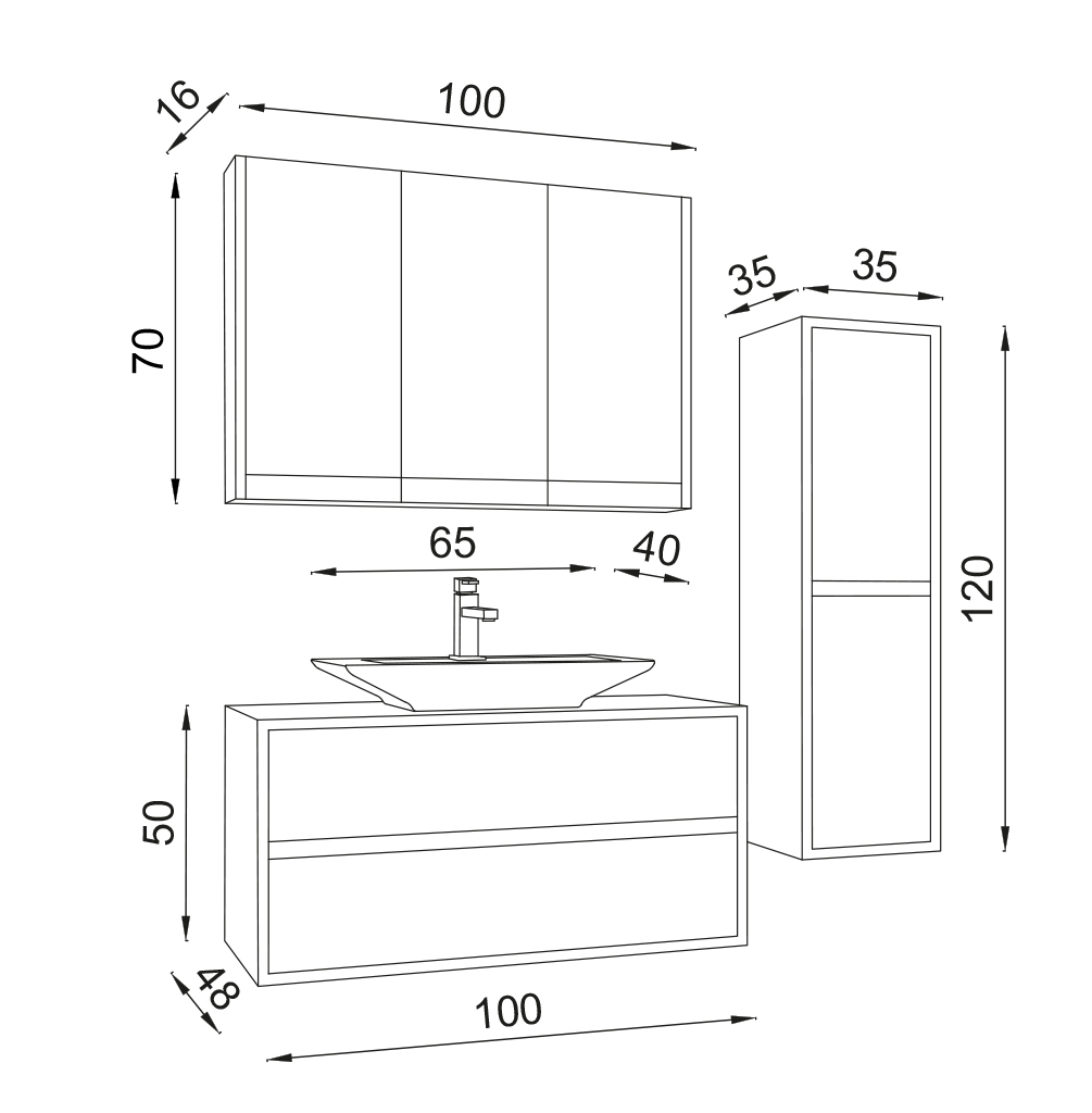 Leda 100 Banyo Dolabı