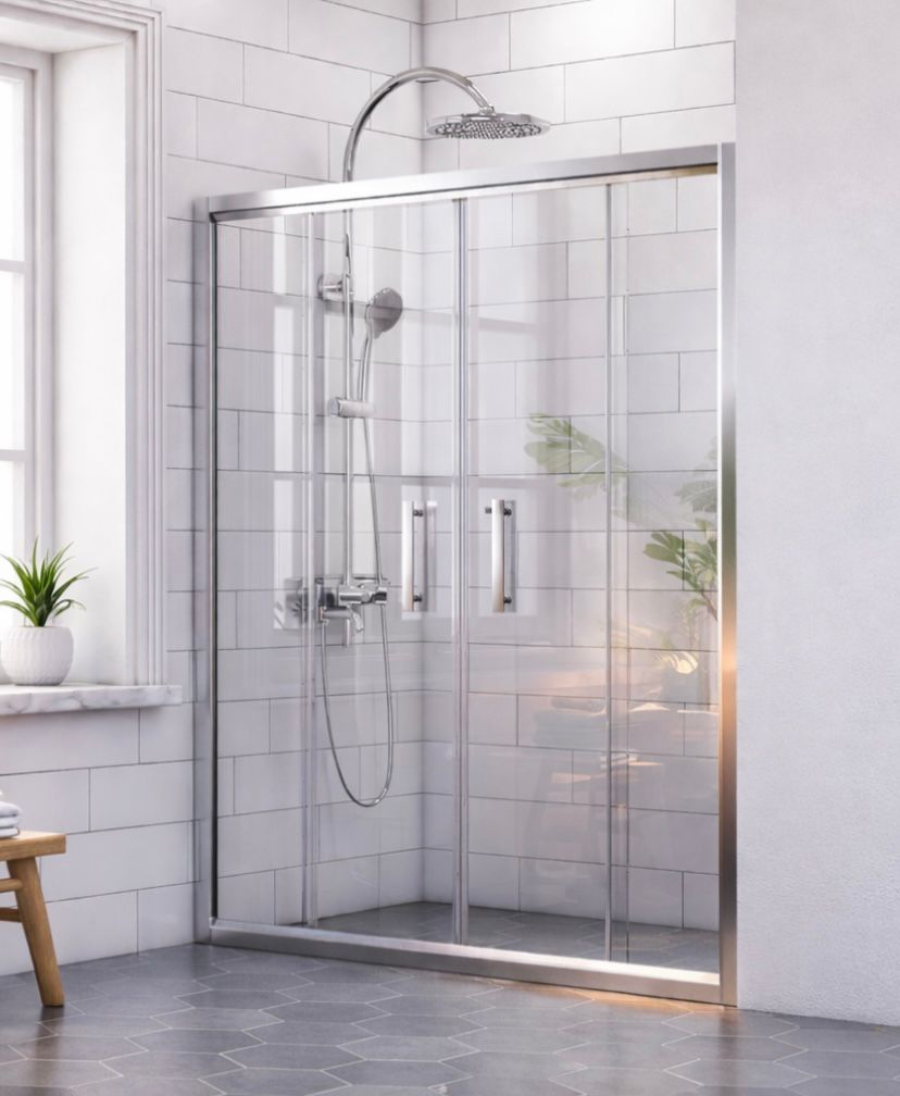 ZYN-406 Elegant Niş Serisi Sürgülü Duşakabin – 4 Panelli Ortadan Açılır Parlak Gümüş